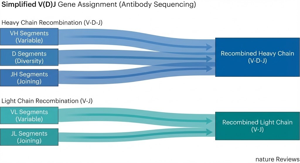 Umfassende Analyse der Keimbahnursprünge von schweren und leichten Ketten, die die Antikörpertechnik und IP-Dokumentation unterstützen.