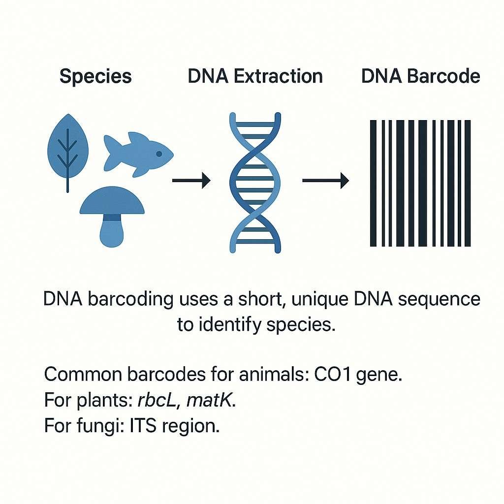 Das Konzept des DNA-Barcodings wurde 2003 von Dr. Paul Hebert eingeführt. Er schlug vor, die CO1-Gen (Cytochrom c-Oxidase-Untereinheit 1) aus mitochondrialer DNA, um Tierarten zu unterscheiden. Bei Pflanzen verwenden Wissenschaftler häufig andere genetische Marker wie rbcL, matKund ITS2 als Barcodes.