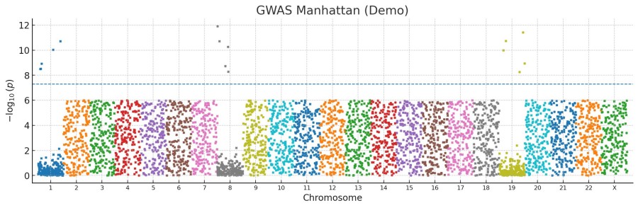 GWAS Manhattan-Diagramm aus der Infinium Global Diversity Array-8 Kohorte.