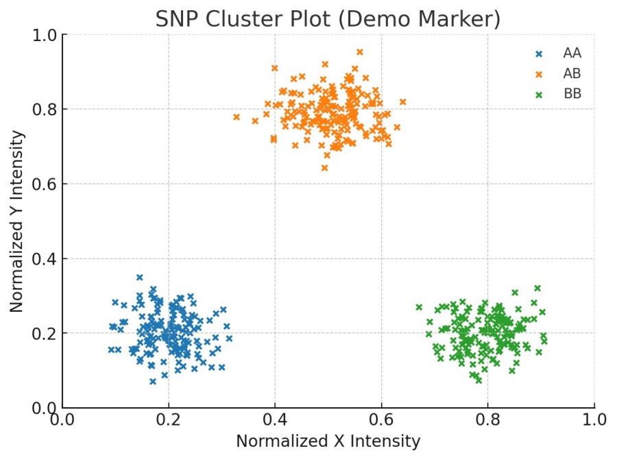 Repräsentativer SNP-Cluster-Plot von der Illumina Infinium Global Diversity Array.