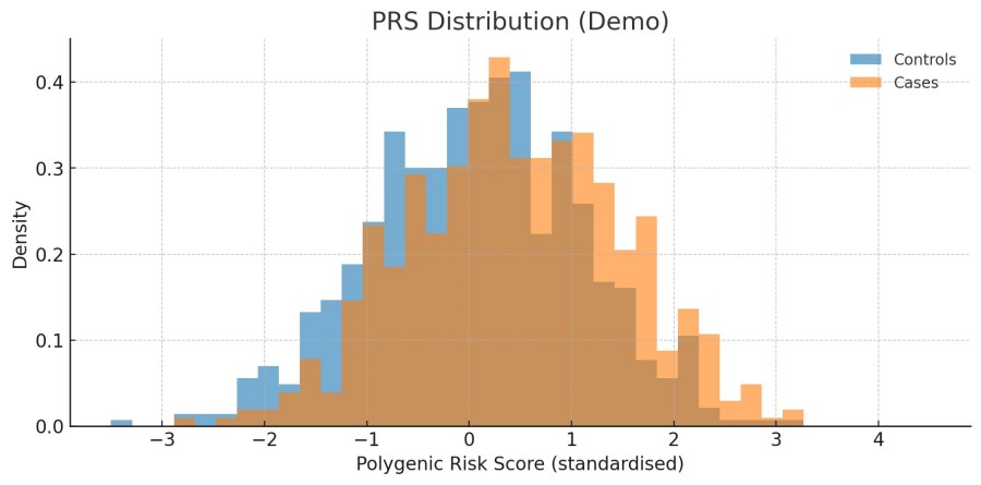 Zusammenfassung des polygenen Risikoscores aus der Infinium Global Diversity Array-8 Kohorte.