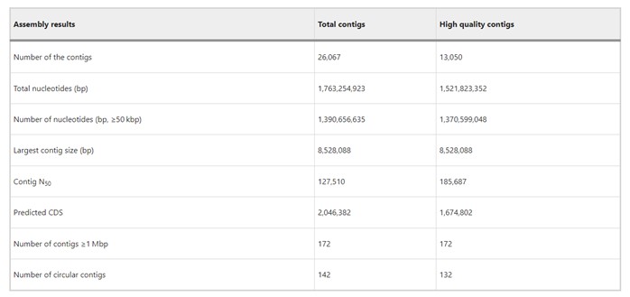 Die Autoren verwendeten PacBio Sequel II, um das mit Blättern assoziierte mikrobielle DNA zu sequenzieren, und generierten 140 Gbp Daten mit einer durchschnittlichen Lese-Länge von 17 kbp und einer mittleren Bibliotheksgröße von 15 kbp. Sie stellten 26.067 Contigs (N50 = 128 kbp) zusammen, darunter 142 zirkuläre Contigs. Über die Hälfte waren von hoher Qualität (>5 Lese-Tiefen), was 80% der Reads und >90% der Nukleotide in Contigs ≥50 kbp entspricht. Alle Contigs ≥1 Mbp waren von hoher Qualität, was die Zuverlässigkeit für die Untersuchung der bakteriellen Gemeinschaftszusammensetzung und -funktionen im Mikrobiom der Reisphyllosphäre bestätigt.