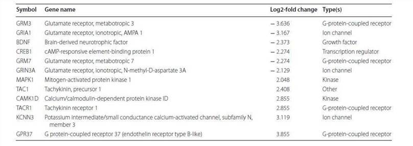 Tabelle 3. Veränderte Methylierungsgene, die dem Signalweg der neuropathischen Schmerzen zugeordnet sind.